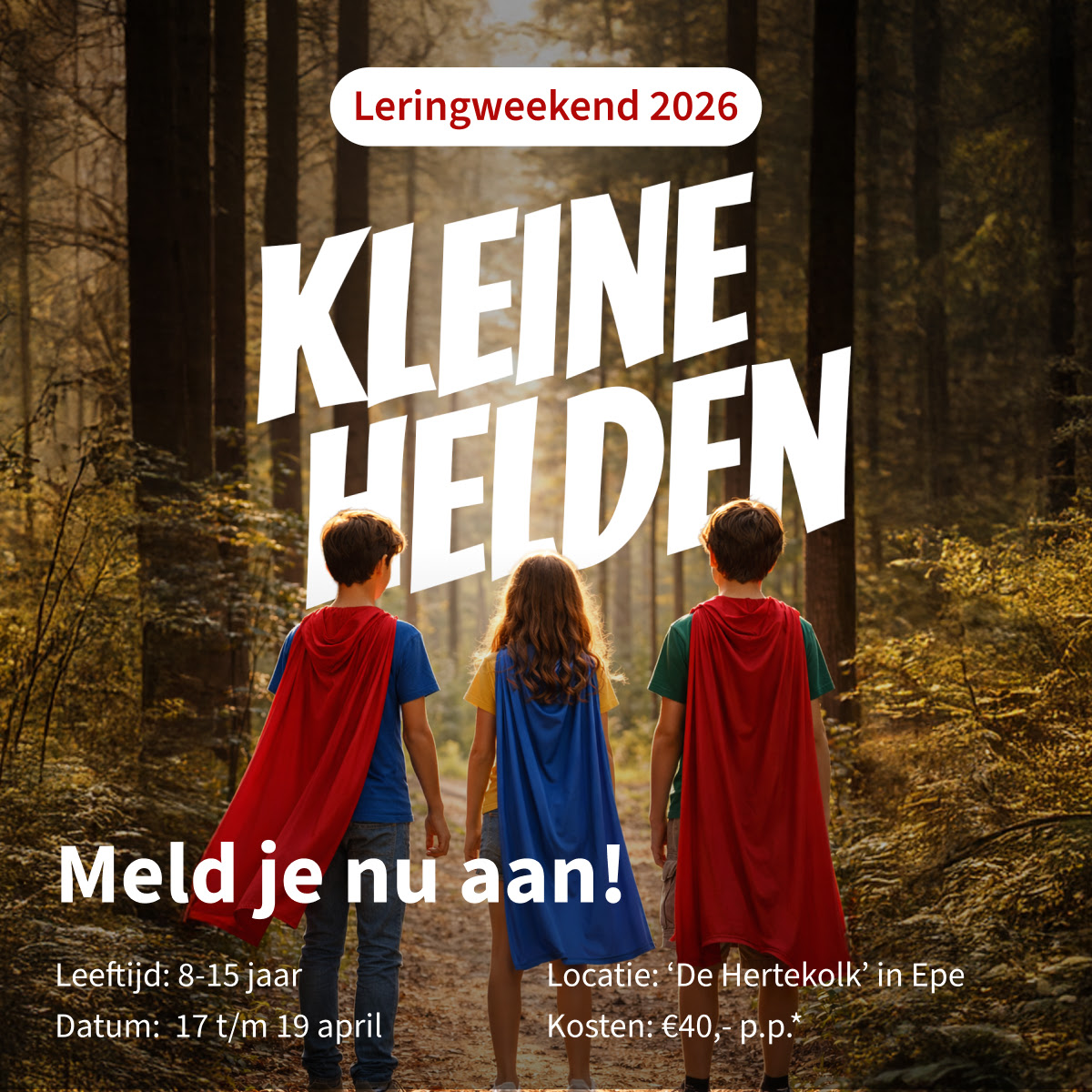 Van 17-19 april wordt het leringweekend georganiseerd voor jongeren tussen de 8-15 jaar in locatie ‘de Hertekolk’ in Epe.